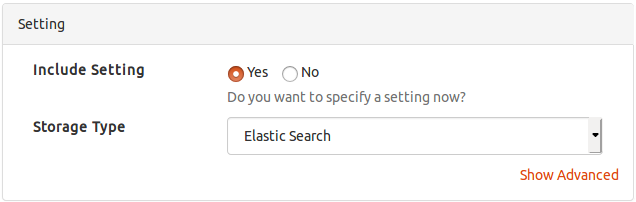 Note that this can (and most likely should) be changed after an import, so it is sufficient to specify only Storage Type (defaults to Elastic Search).