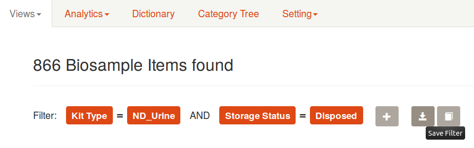 Filter defines a data/cohort selection and is specified as a sequence of conditions connected by AND operator.